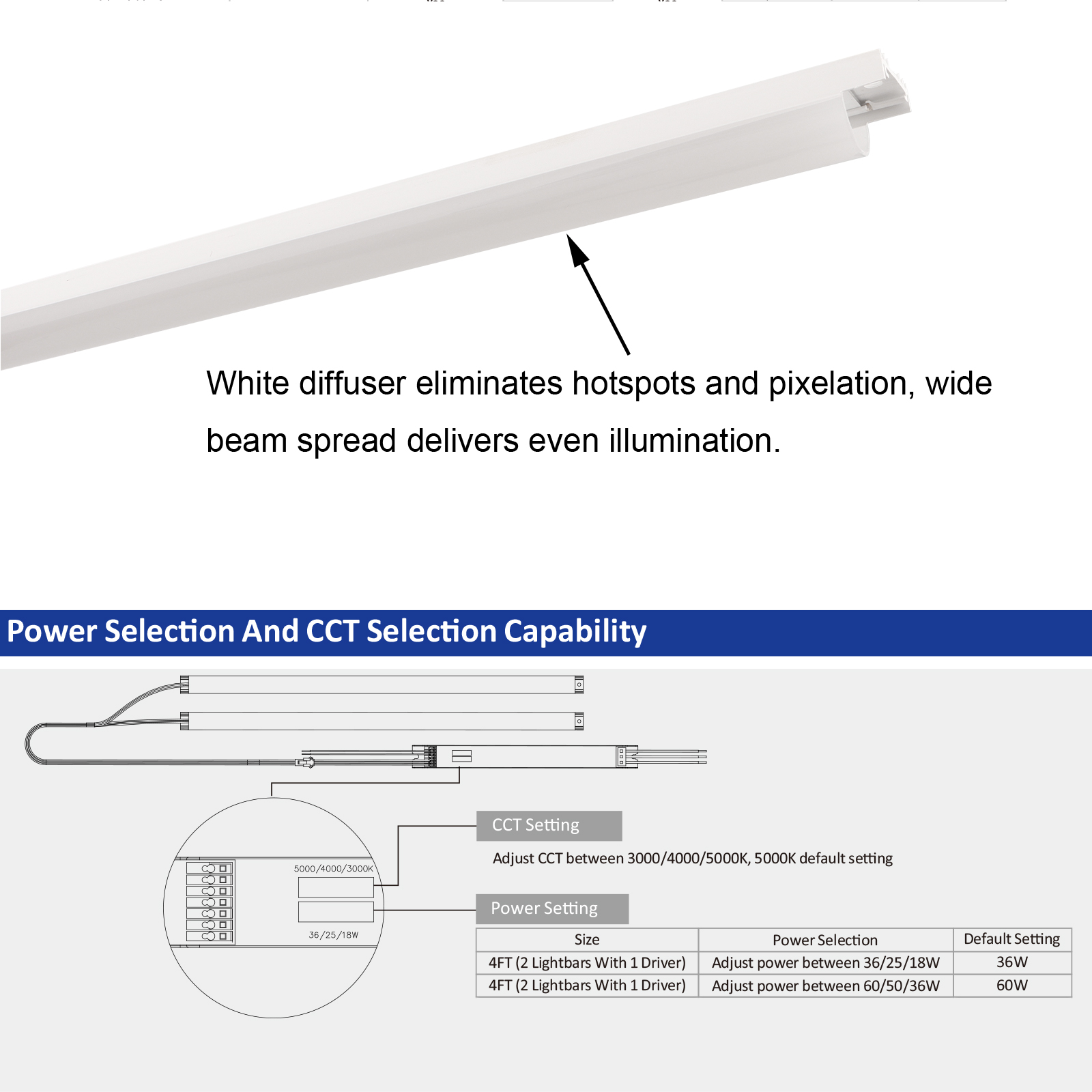 4FT LED Magnetic Troffer Retrofit Kit 2 Lightbars with 1 Driver Power&CCT Selection 36/25/18W 60/50/36W 3000/4000/5000K White Diffuser ETL DLC 5 Pack